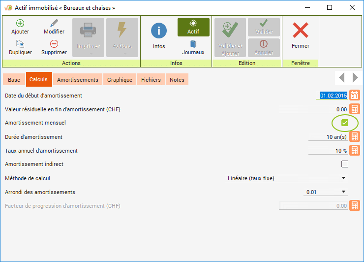 Il n'est pas possible d'activer ou de désactiver l'amortissement mensuel si des éléments sont déjà comptabilisés.