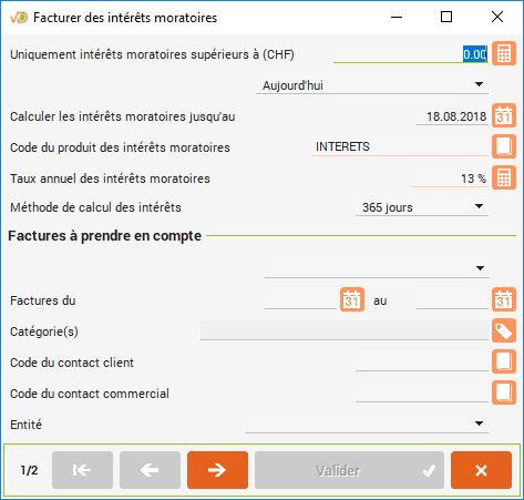 Les intérêts moratoires doivent être calculés et facturés manuellement.