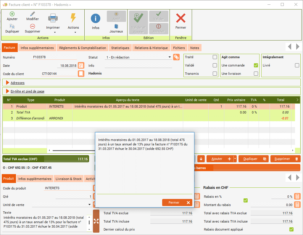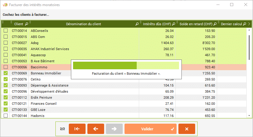 L'assistant tient compte des intérêts déjà facturés au client afin de ne pas les facturer à double.