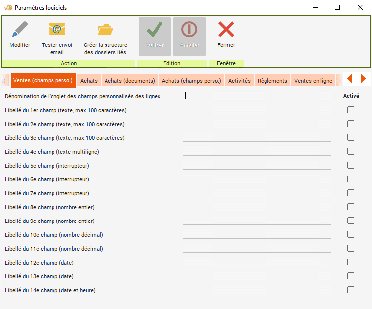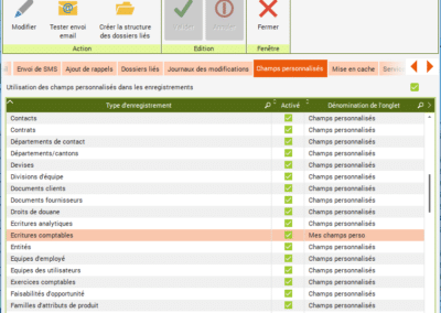 Activez « Utilisation des champs personnalisés dans les enregistrements » dans l'onglet « Champs personnalisés » des paramètres du logiciel.