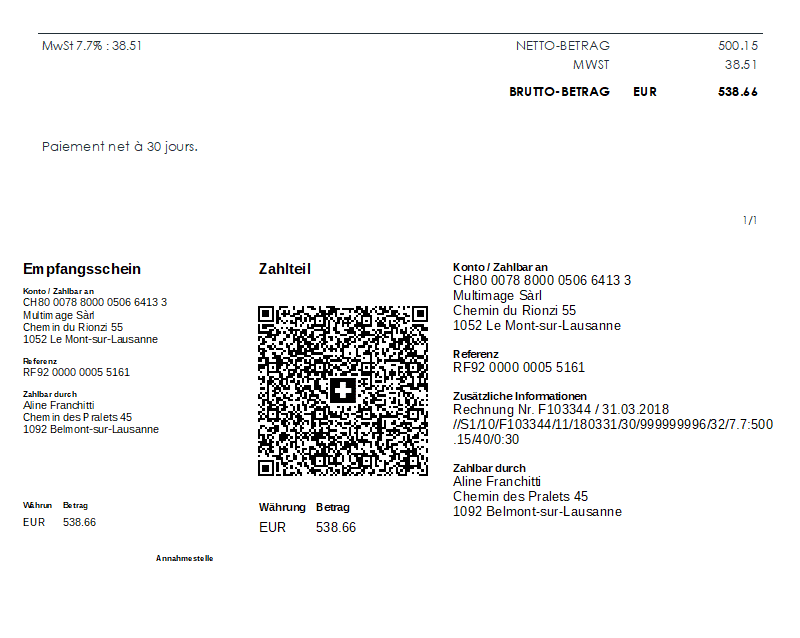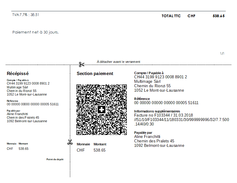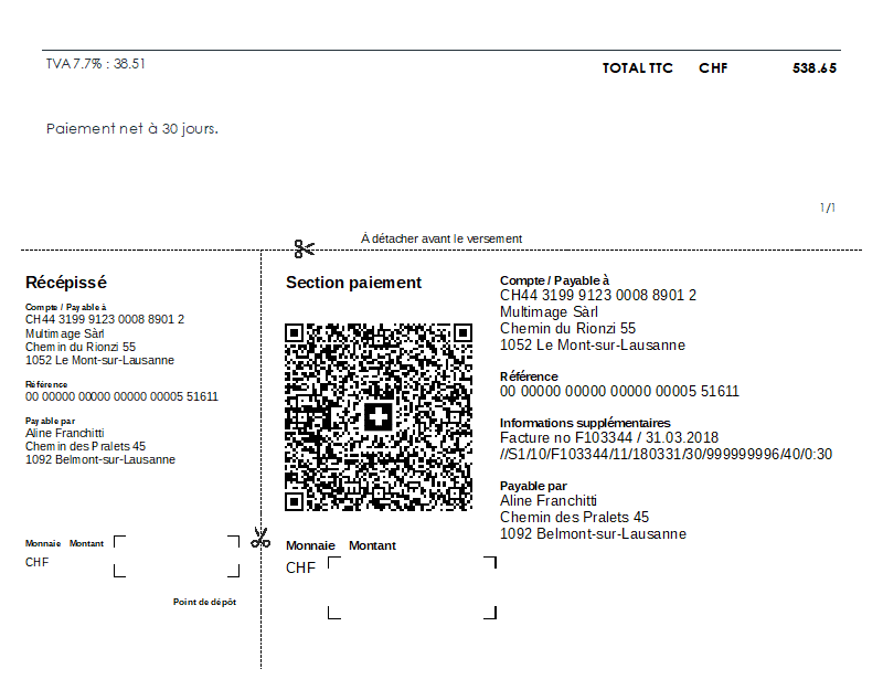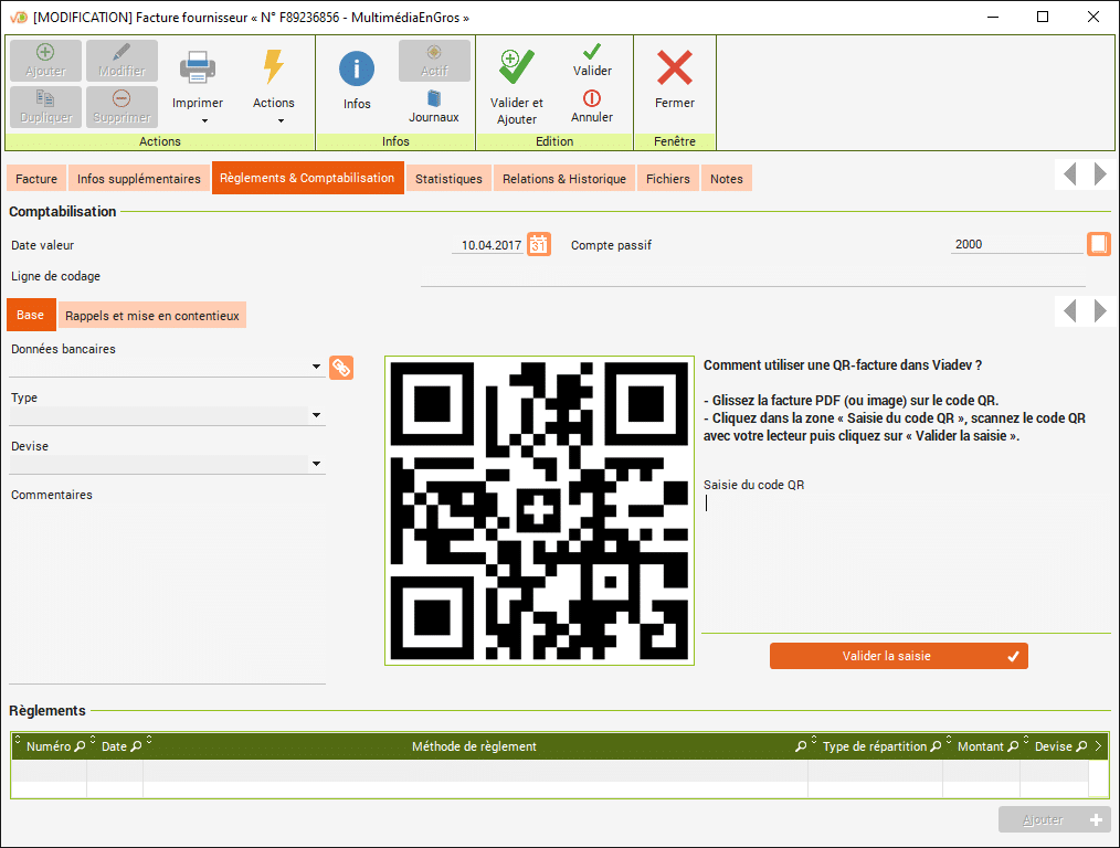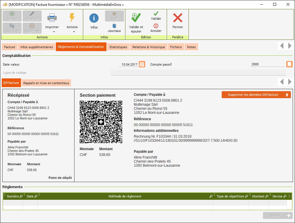 Support des factures clients et fournisseurs avec code QR (QR-facture)