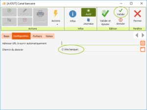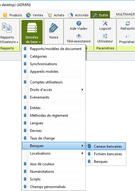 Dans le ruban « Outils », cliquez sur « Données de base » puis sur « Banques » puis sur « Canaux bancaires ».