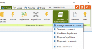 Dans le ruban « Ventes », cliquez sur « Données supplémentaires » puis sur « Configurations de document ».