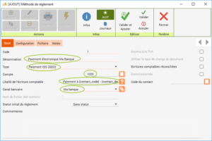 Choisissez le libellé de l'écriture comptable, par exemple « Encaissement de {contact_code} - {contact_denomination} ».