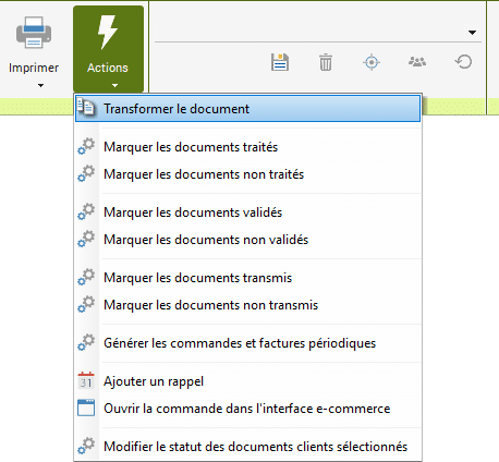 Cliquez sur « Actions » puis sur « Transformer le document ».