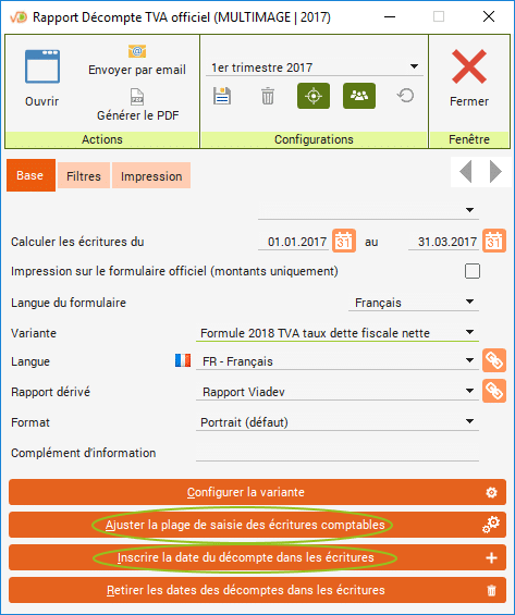 Cliquez sur « Ajuster la plage de saisie des écritures comptables » afin d'éviter la saisie d'écriture dans la période du décompte TVA.