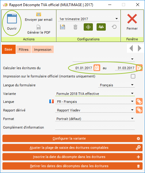 Revenez dans le rapport « Décompte TVA officiel ».