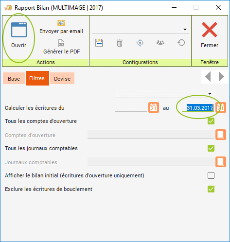 Naviguez dans l'onglet « Filtres » puis introduisez la date de fin du décompte dans « Calculer les écritures au ».