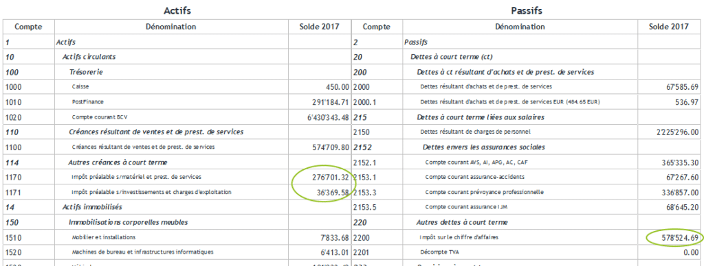 Rouvrez le bilan afin de vous assurez que les comptes 1170, 1171, 1172 et 2200 ont désormais un solde de 0.-.