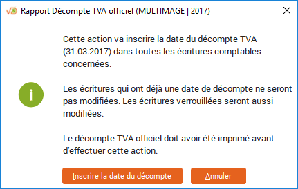 Cliquez sur « Inscrire la date du décompte dans les écritures » afin d'éviter de les décompter à double si vous devez faire un décompte correctif par la suite.