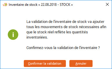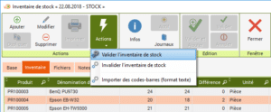 Cliquez sur « Actions », puis sur « Valider l'inventaire de stock ».