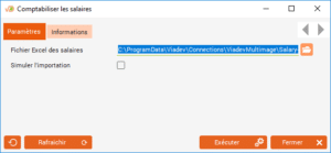 Le mode « Simuler l'importation » permet de vérifier que tout est renseigné correctement dans le fichier des salaires (comptes, libellé des écritures, etc.) sans ajouter les écritures comptables dans le logiciel.