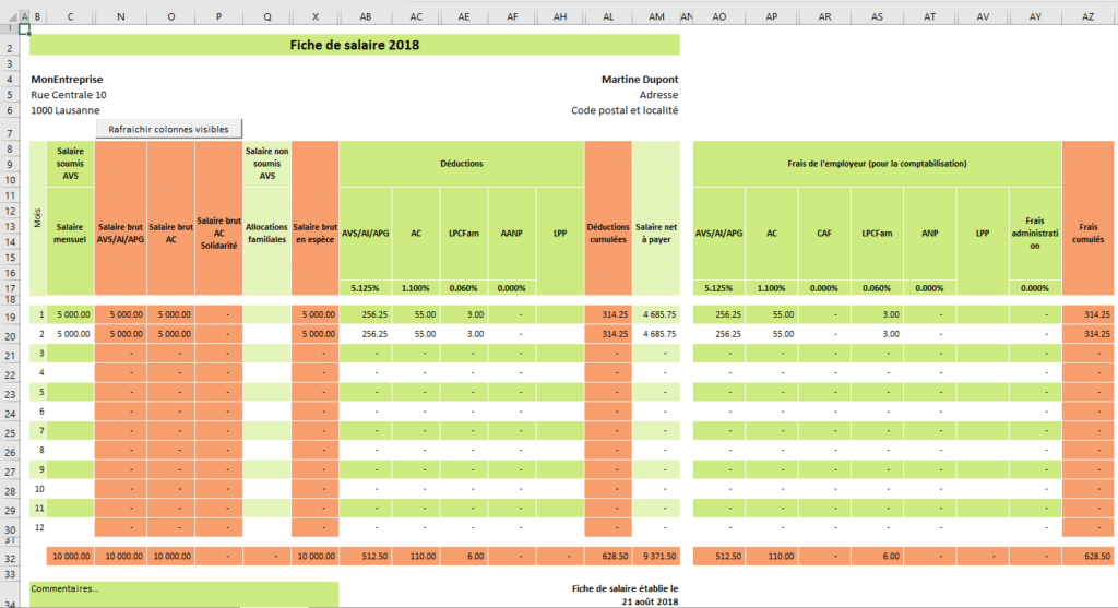 Fichier des salaires Excel