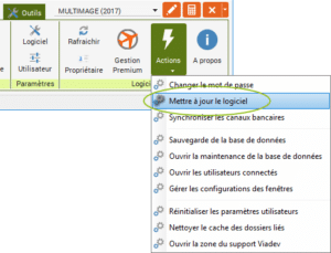 Dans le ruban « Outils », cliquez sur « Actions » depuis le regroupement « Logiciel », puis sur « Mettre à jour le logiciel ».