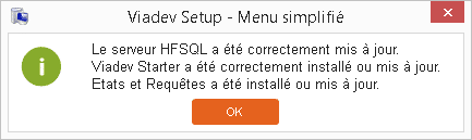 Les composants suivants sont pris en charge : Serveur HFSQL, Viadev Starter, Etats et Requêtes, connecteurs ODBC, connecteurs OLE DB.
