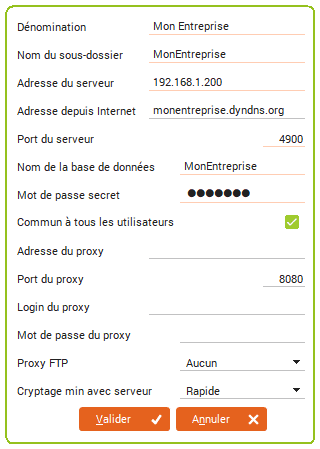 Cette adresse sera automatiquement utilisée lorsque la case « Connexion par Internet » sera cochée.