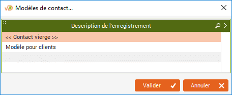 Si vous avez créé des modèles de contact, sélectionnez le modèle à utiliser puis cliquez sur « Valider ».