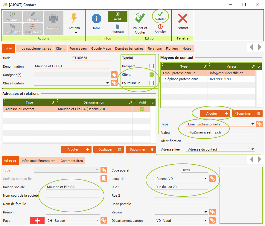 Ce tuto traite uniquement de l'ajout de base d'un client, d'un fournisseur ou d'un employé. Veuillez consulter l’aide intégrée au logiciel pour obtenir plus d’informations sur les nombreuses possibilités offertes.