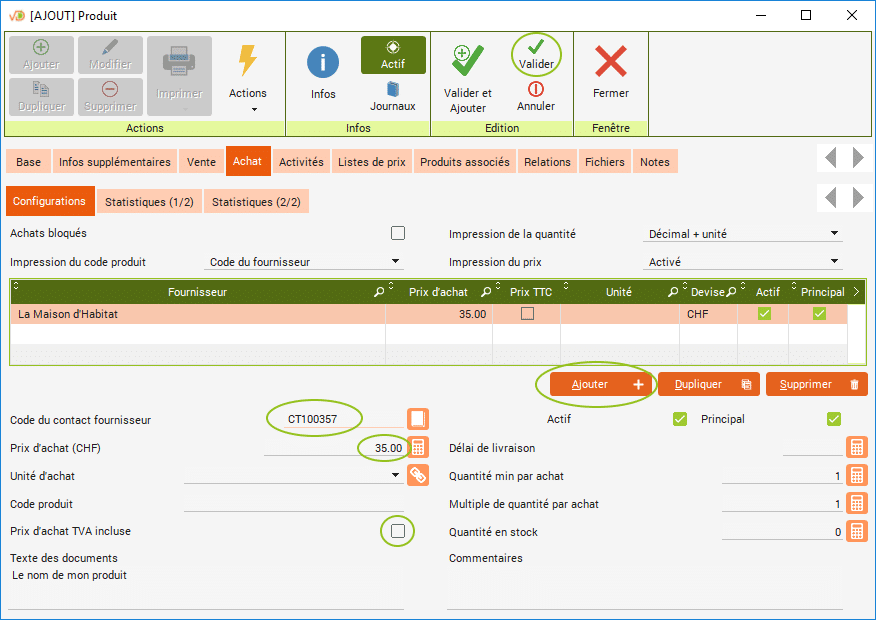 Si vous avez coché « Achat », naviguez dans l’onglet « Achat ».