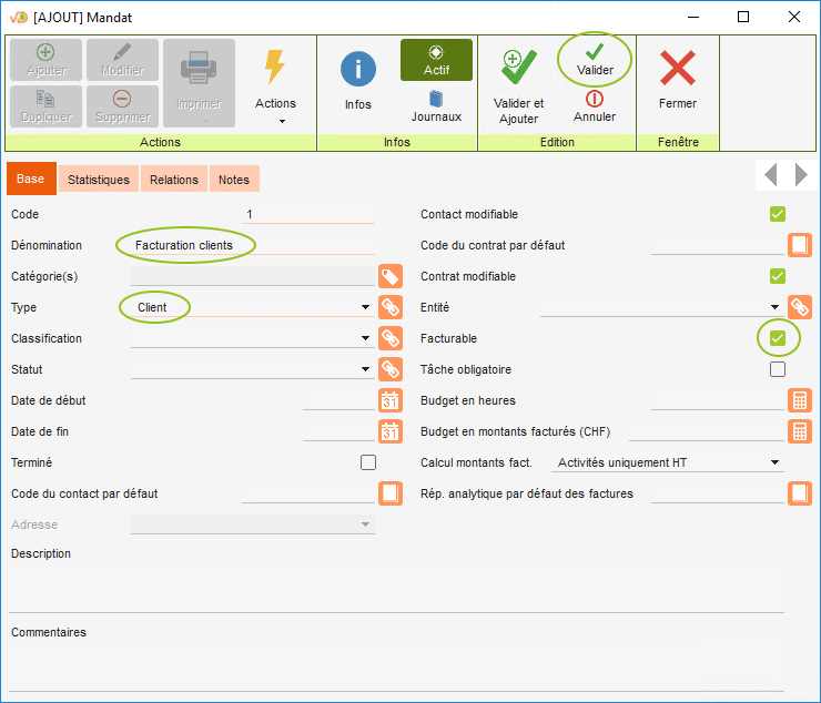 Cochez la case « Facturable ».