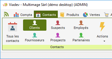 Dans le ruban « Contacts », cliquez sur « Clients ».