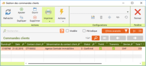 La fenêtre de gestion des commandes ou des factures est ouverte sur le client sélectionné.