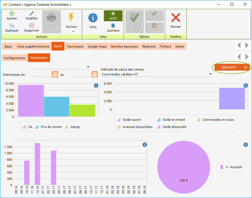 Suivez les étapes ci-dessous pour afficher les statistiques du client (CA cumulé, CA des 12 derniers mois, etc.)